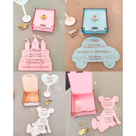 • 1 Caixa Convite Pajem Daminha Florista Quebra-cabeça MDF casamento noivos pajens
