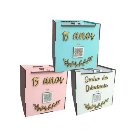 • 1 Caixa Pix Urna Debutante Aniversario 15 anos – Sonho da debutante- Urna Ja montada