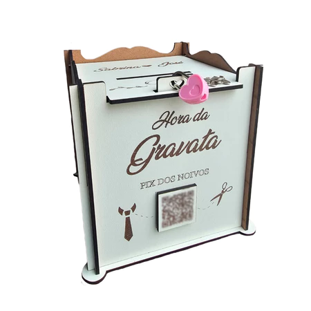 • 1 Caixa Pix e Dinheiro- Gravata, Sapatinho da Noiva, Lua de Mel – Urna Cofre p/ Casamento Noivos MDF